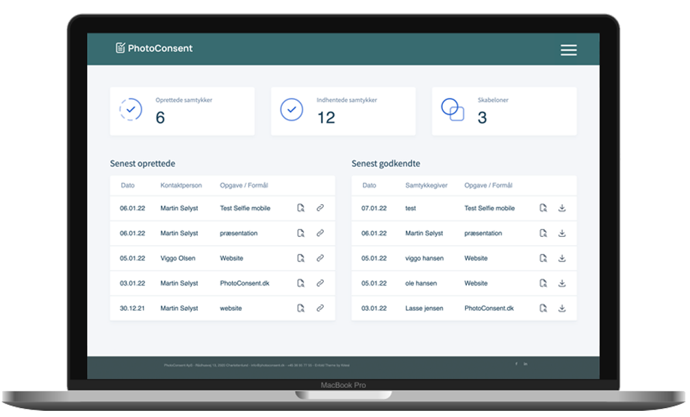 Med PhotoConsent får du nemt accept fra dem du gerne vil fotografere eller filme. Dette sker med en QR kode direkte fra din smartphone. PhotoConsent arkiverer automatisk samtykket for dig, sikkert og let tilgængeligt, så du altid kan finde det, når du har brug for det.